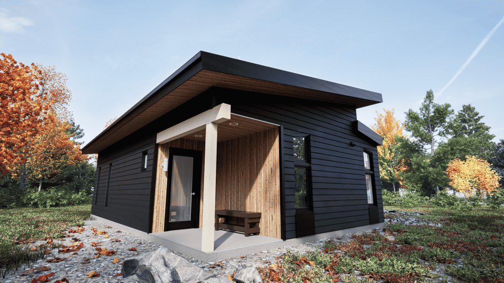 nestled on a corner lot, this modern cabin offers a serene escape from urban life while reflecting the couple’s passion for nature and mindful living.