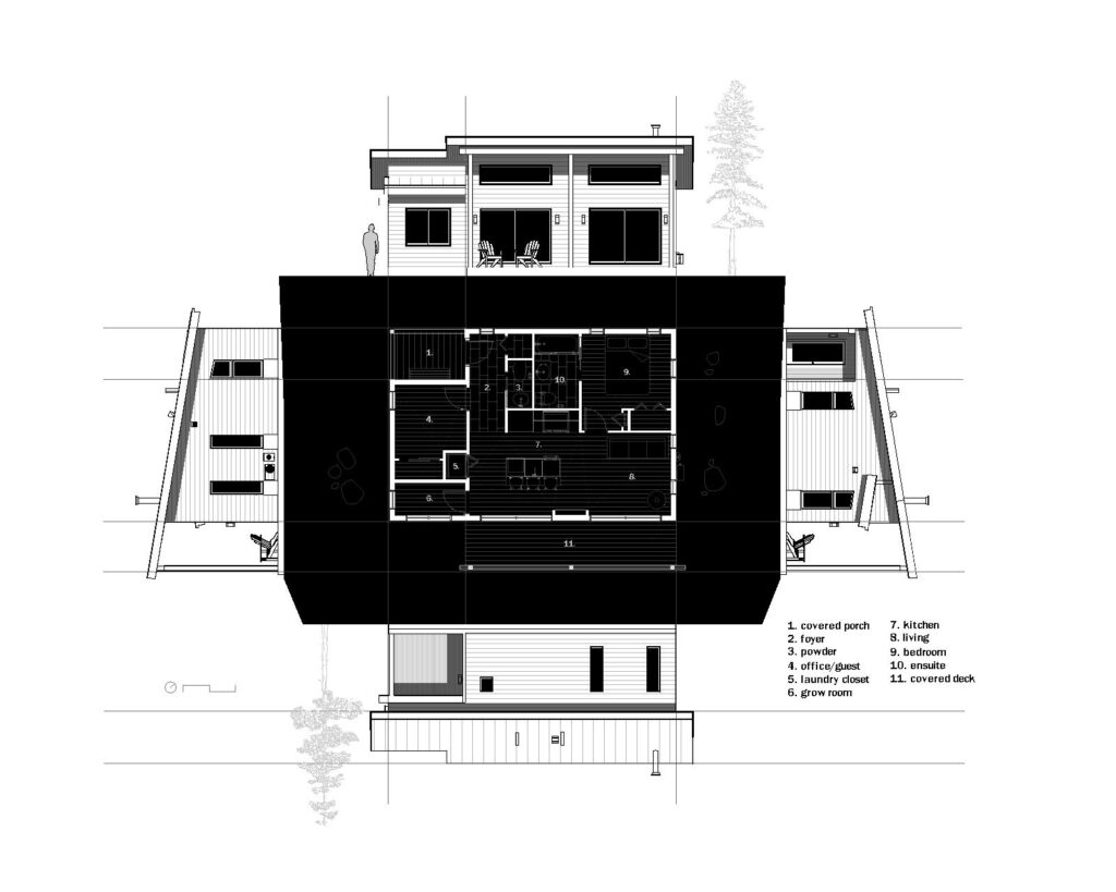 Inspired by the form and functionality of a greenhouse, the cabin integrates passive solar design principles and cross ventilation to optimize energy efficiency and comfort. Contained within a modest 600 sq.ft footprint, the structures orientation takes full advantage of the site’s generous southern exposure, enhancing natural light and warmth throughout the year.