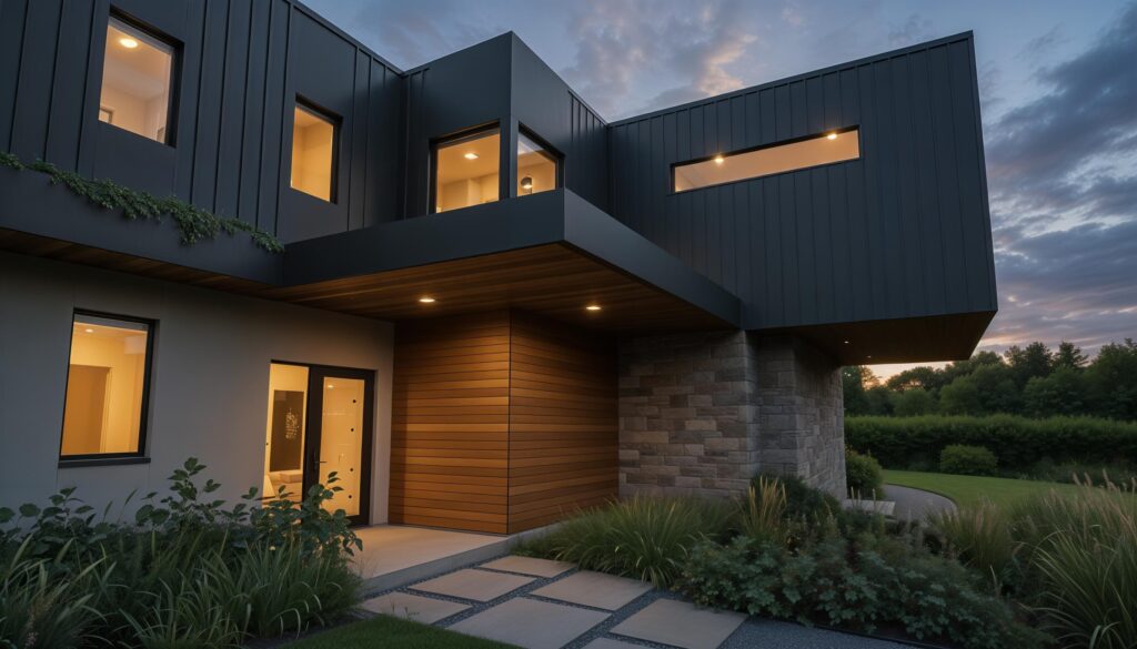 Situated on a quiet lot in the rural township of Montague, the residence engages directly with its regional context – railway lines, historic factories, and working landscapes. Its design balances advanced building envelope strategies with raw expressions of steel, concrete, brick and wood.